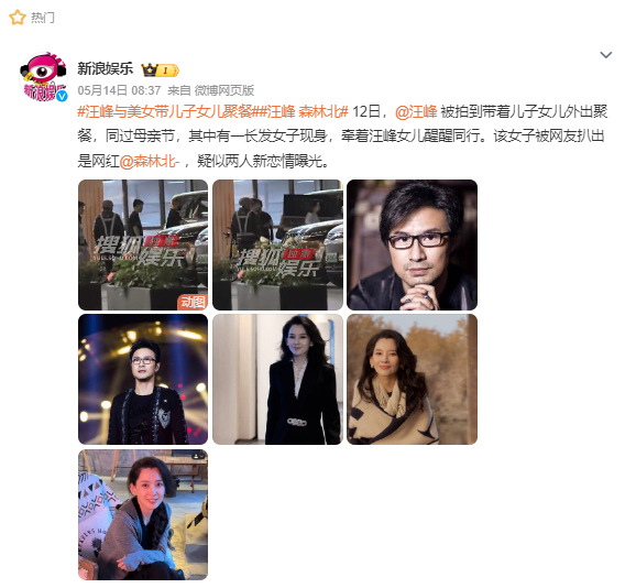 5月12日母亲节当天,汪峰被拍到带儿子女儿出去聚餐,一女子同行,疑似新恋情曝光。