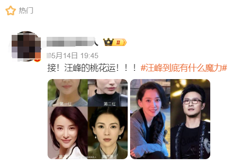 在微博平台上,甚至有娱乐博主发起了一个#汪峰到底有什么魔力# 的话题,并表示“接!汪峰的桃花运!!!”让人忍俊不禁。